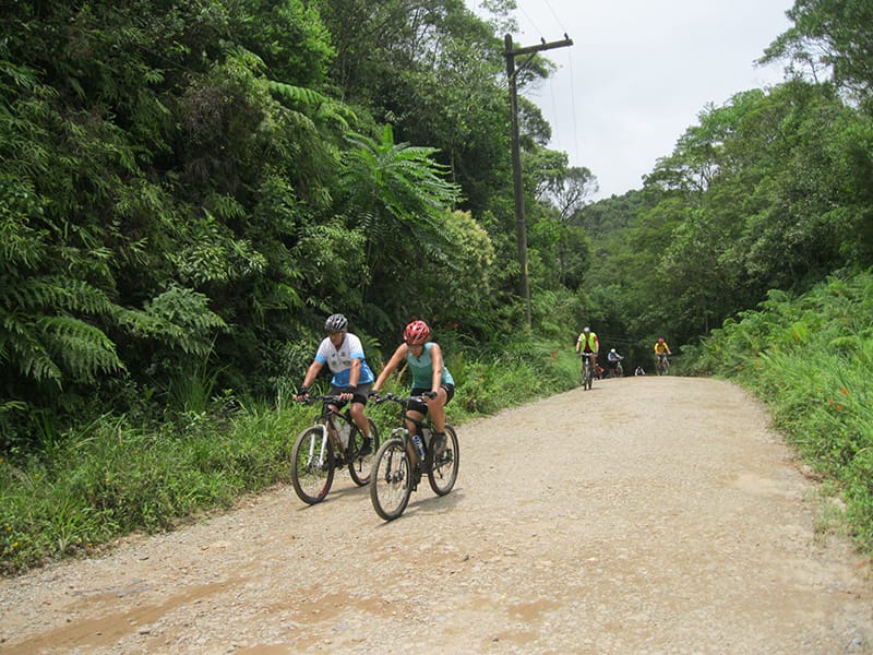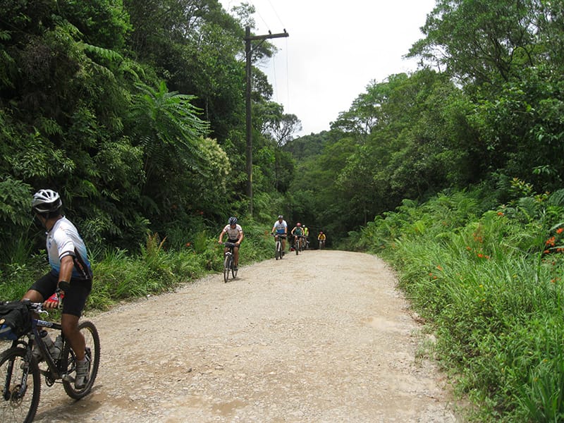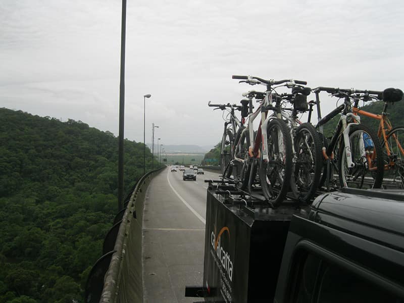 Uma dica para quem tem vontade de descer, vá preparado para imprevistos e com muita paciência. Enquanto a Van subia pela estrada era possível ver bikes ainda descendo pela manutenção, ou seja ainda mais uma hora de pedal pela frente as 18:30, se possível junte um grupo e algugue uma Van, imagine a quantidade de gente que comprou a passagem antecipada e não conseguiu chegar a tempo, além da espera enorme para quem deixou para comprar ao chegar no litoral. Não se iluda achando que como desce para o litoral serão apenas descidas, mesmo na estrada de manutenção tem algumas subidas boas, na ilha de Bororê também e mesmo entre a ciclovia e a balsa, ou seja é um pedal para quem já tem alguma familiaridade com percursos maiores, vi muito marinheiro de primeira viagem empurrando até nas retas com aquela cara de “o que eu estou fazendo aqui?” estampada.