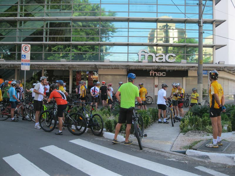 Cheguei na FNAC e a pracinha estava lotada. com o sol que apareceu logo cedo a galera se animou e veio pedalar. Dois grupos o Olavo no moderado e o Edson no forte. Fui no do Edson fomos até o parque do Trote na Vila Guilherme, o ritmo foi muito bom, o pessoal que está saindo no forte está bem mais preparado do que alguns meses atrás e o pedal tem rendido bem mais 🙂
