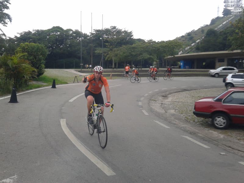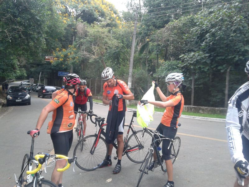 O tempo estava bem desanimador, com cara de que ia ter garoa em breve. No caminho meu cateye traseiro caiu e quando voltei pra pegar ainda vi um ônibus passar por cima e destruir tudo, achei melhor não desanimar e continuar em direção ao Pedal da Vila. Quando cheguei perto já vi que a galera estava por lá. Saímos antes das 7:30 e seguimos pela Bandeirantes, na hora de começar a subir eu senti um pouco e fui num ritmo mais tranquilo demorei 24:47 minutos pra chegar no topo, mais de dois minutos acima do meu melhor tempo, o negócio agora é voltar a treinar por lá todo sábado que for possível e tentar melhorar meu tempo de novo.