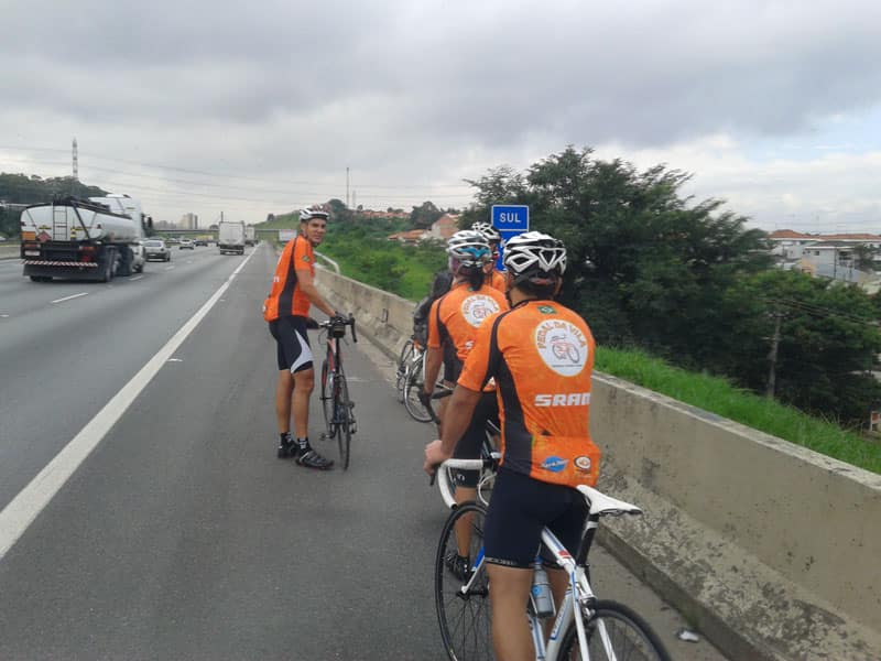 O tempo estava bem desanimador, com cara de que ia ter garoa em breve. No caminho meu cateye traseiro caiu e quando voltei pra pegar ainda vi um ônibus passar por cima e destruir tudo, achei melhor não desanimar e continuar em direção ao Pedal da Vila. Quando cheguei perto já vi que a galera estava por lá. Saímos antes das 7:30 e seguimos pela Bandeirantes, na hora de começar a subir eu senti um pouco e fui num ritmo mais tranquilo demorei 24:47 minutos pra chegar no topo, mais de dois minutos acima do meu melhor tempo, o negócio agora é voltar a treinar por lá todo sábado que for possível e tentar melhorar meu tempo de novo.