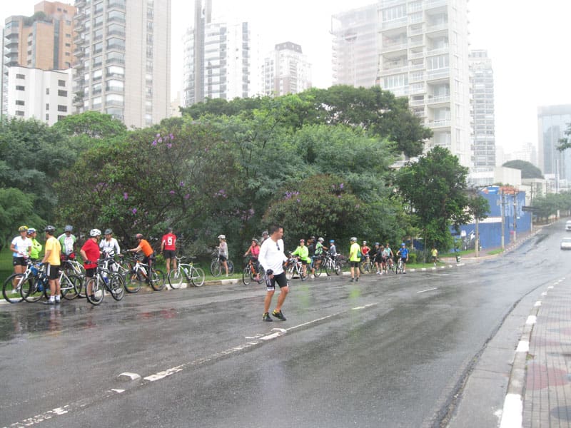 Como este mês eu pedalei muito pouco hoje ia fazer a ciclovia e o Olavo, amanheceu com chuva mas decidi ir pelo menos na ciclovia com chuva mesmo. Peguei bastante chuva no caminho e na metade da ciclovia, depois o sol apareceu e e corri pra pegar o pessoal do Olavo na pracinha da FNAC.