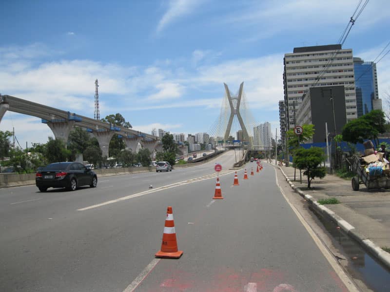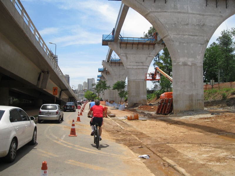 Hoje antes e depois do Pedal do Olavo girei pela ciclofaixa, logo cedo fui em direção a Paulista e na hora do Almoço fui na direção da Espraiada. As obras do monotrilho estão bem avançadas mesmo lançando as vigas somente de madrugada em um grande trecho já é possível imaginar como ficará a montagem final.