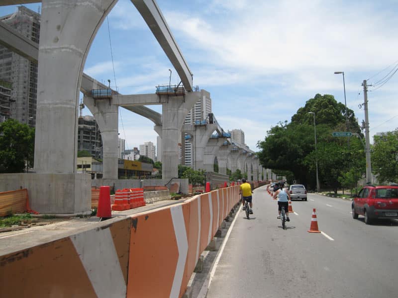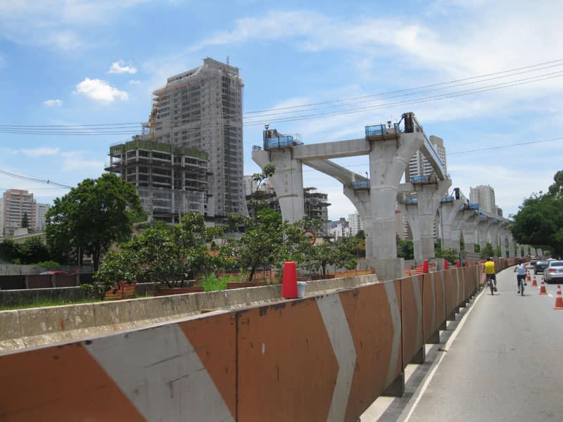 Hoje antes e depois do Pedal do Olavo girei pela ciclofaixa, logo cedo fui em direção a Paulista e na hora do Almoço fui na direção da Espraiada. As obras do monotrilho estão bem avançadas mesmo lançando as vigas somente de madrugada em um grande trecho já é possível imaginar como ficará a montagem final.