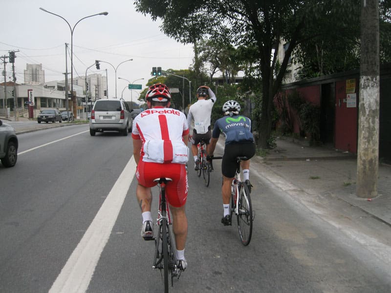 01) muita gente gosta de pedalar próximo ao líder e acaba deixando a roda entre a do guia e a do ciclista que estiver ao lado, nunca faça isso pois se aparecer um buraco e uma das bikes que estão na frente precisarem realizar algum movimento brusco a roda traseira vão tocar na sua dianteira e você vai perder o controle da bike, além de cair você provavelmente derrubara quem estiver atrás ou dos lados.