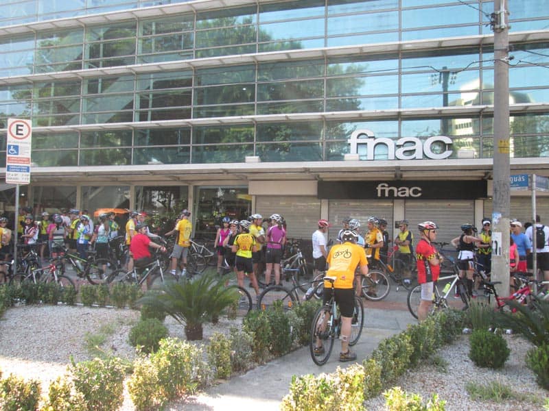 Cheguei na FNAC e a pracinha estava cheia, apesar disso parecia que sairia somente um pedal, enquanto conversávamos aguardando a saída começou um zumzum querendo fazer uma divisão em dois grupos, acabaram me chamando pra puxar uma turma e como achei que tinha condições propus um giro até a Cantareira.